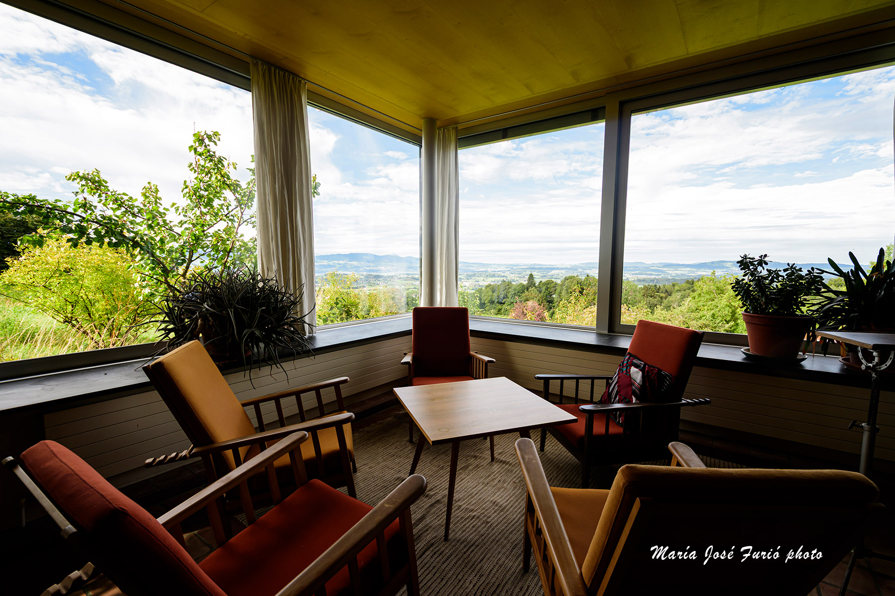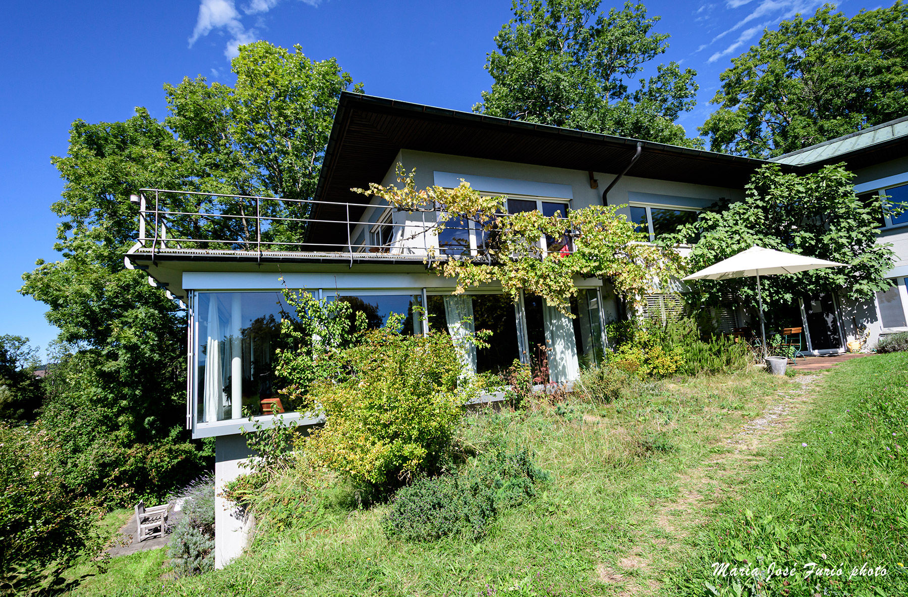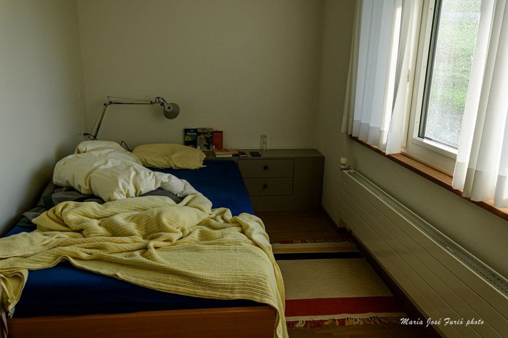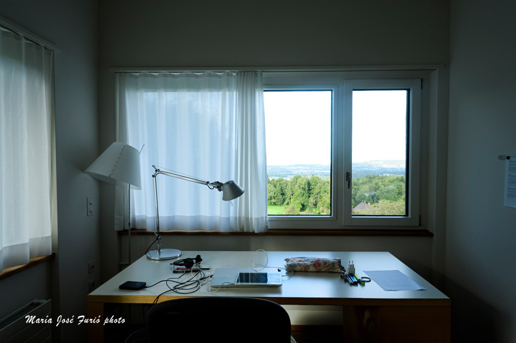 Imágenes del interior de la casa y el jardín en Looren. La casa de los traductores está situada en una especie de aldea, Wernetshausen, a un par de kilómetros de la parada del bus que lleva hasta Hinwil, el núcleo urbano más poblado y con estación de tren que conecta, bien y puntualmente como es fama que ocurre en Suiza, con el resto del país. El lugar es precioso y la casa fantástica, la biblioteca nutrida, las camas comodísimas, la cocina enorme. Tuve la suerte de que me adjudicaran la habitación con baño independiente -supongo, porque no lo pregunté, que depende de la fecha en que se llega y qué habitaciones quedan libres-, que además de una nevera de uso particular, cuenta con una especie de altillo con cama y escritorio pensada para esos traductores que trabajan en tándem. Al revés que en Arles, no se admiten parejas, salvo que se trate de dos traductores que lleguen para trabajar en el mismo proyecto.