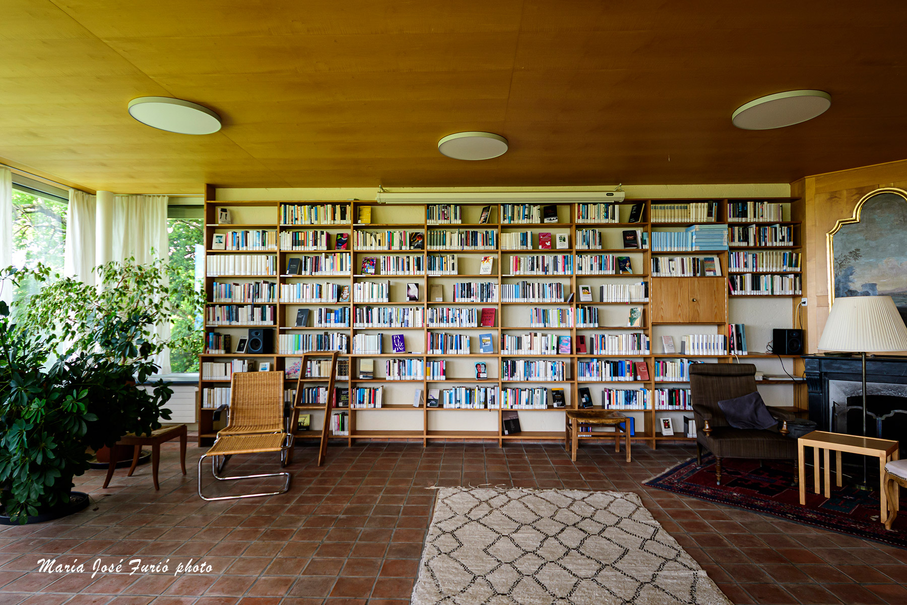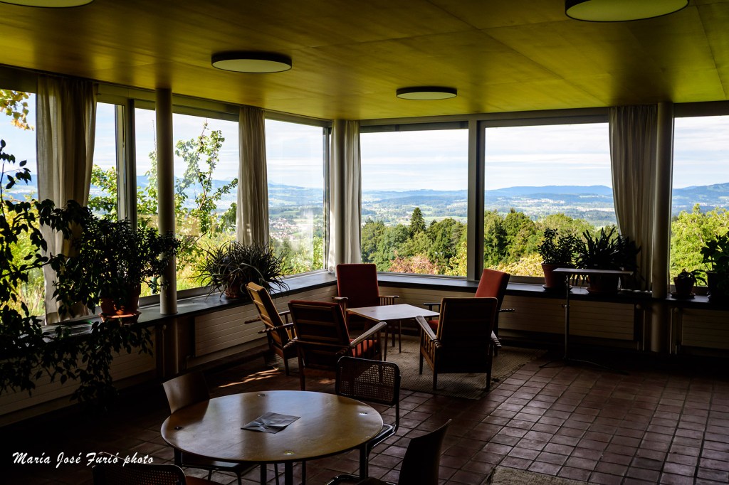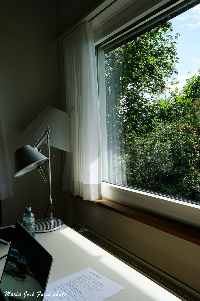 Cada habitación lleva el nombre de un célebre escritor suizo. Bauticé a la mía como la Suite Walser, algunos de sus libros en alemán, italiano y francés decoraban una de las librerías. Estuve curioseando en unos cuentos suyos en italiano, pero la verdad es que nunca le he cogido “el tranquillo” a este autor y no creo que cualquier libro sea bueno como puerta de entrada a una obra. La vista desde la zona de trabajo es la que recoge la última fotografía de esta galería.